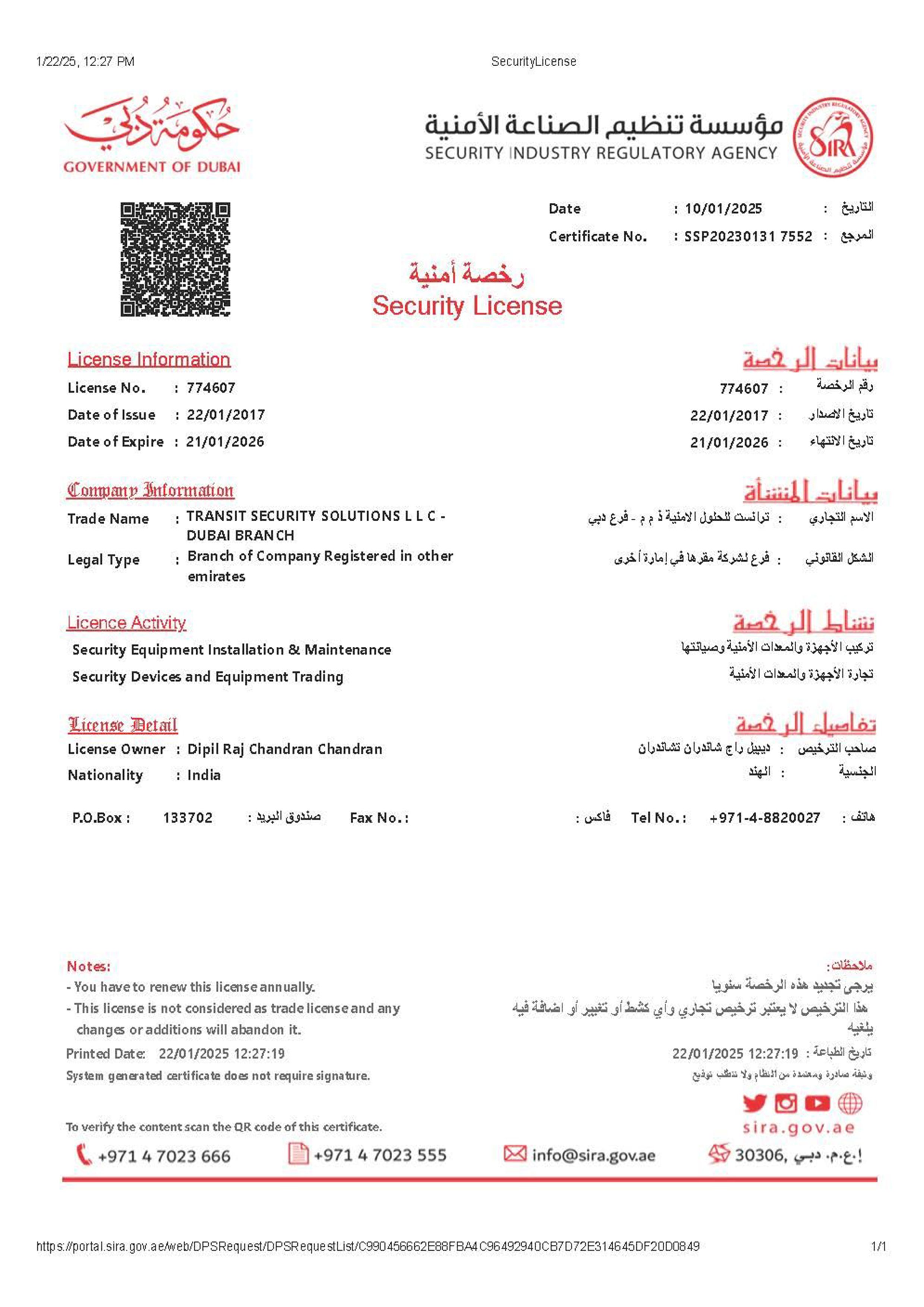 Certifications